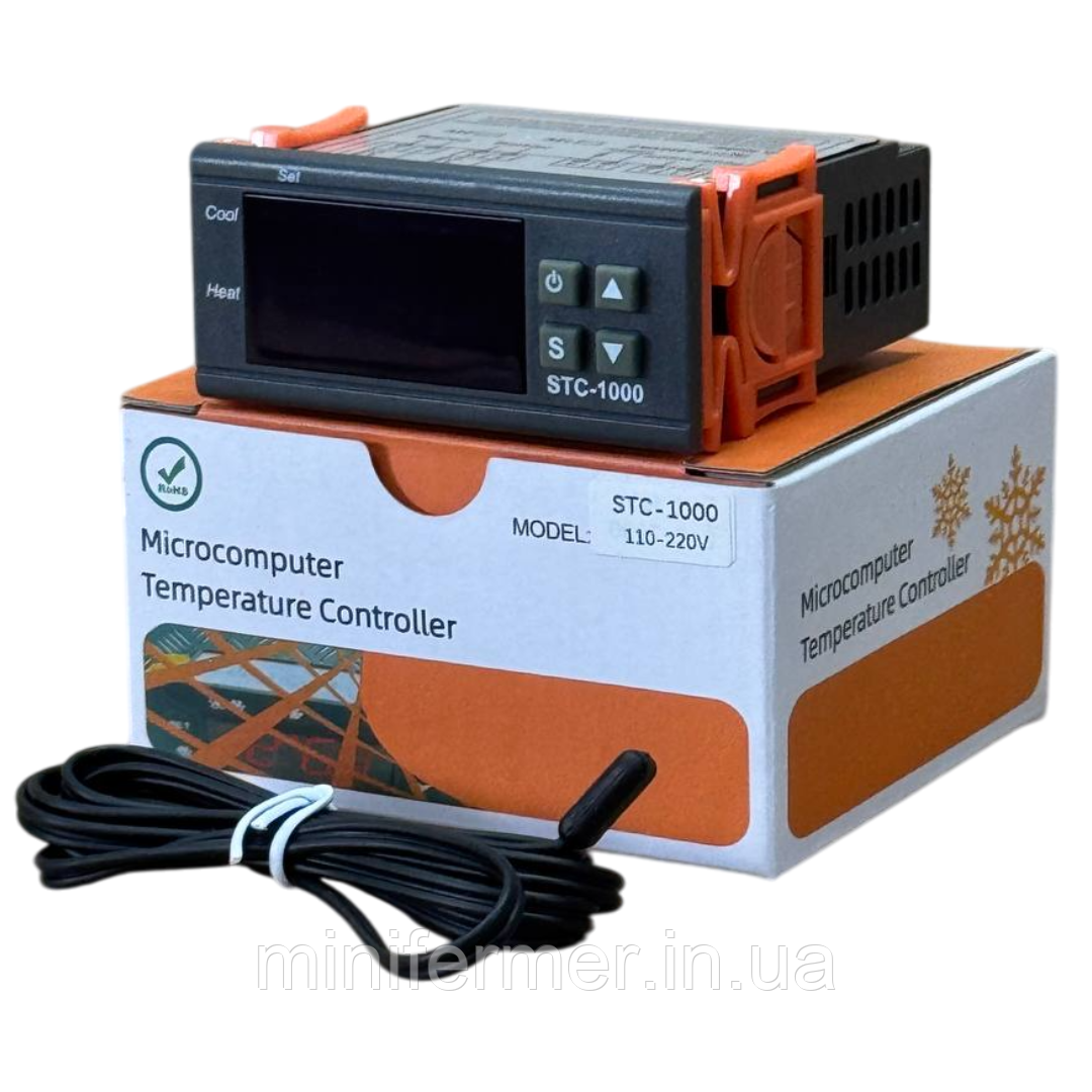 Терморегулятор високої точності STC-1000 є промисловим професійним пристроєм, призначений для підтримки необхідної температури повітря вбутків, теплицях, тераріумах, у системах опалення, для керування температурою теплих підлог, басейнів, морозильних камер, системи для не замерзання водосливів тощо. Терморегулятори широко використовуються для виготовлення саморобних і серійних моделей техніки. Сучасні регулятори температури — це мінікомп'ютер, який відповідає за весь процес контролю температури з атласу. Цей терморегулятор має шкалу англійською мовою, тому що постачається для країн Європи. Досить один раз виставити потрібні параметри, у параметрах приладу і все, можна не турбуватися за результат.